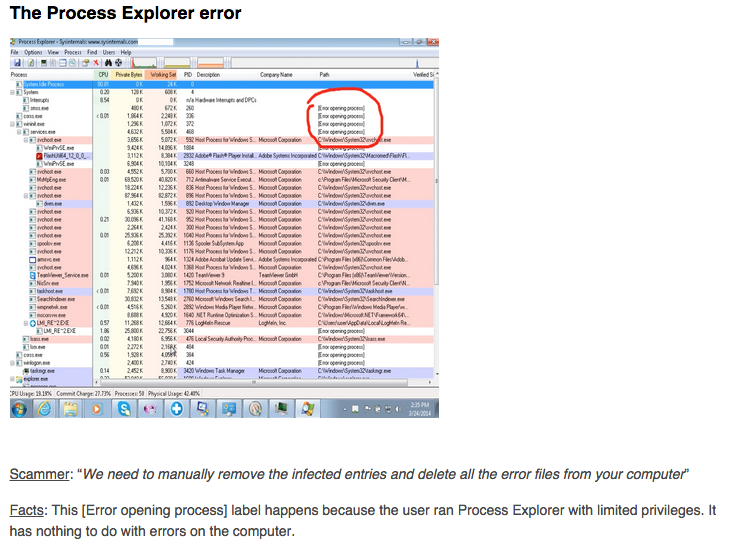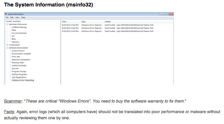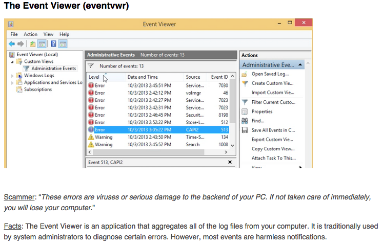 Once logged into your computer, the remote technician will attempt to trick you by fabricating errors or even viruses on your computer. They like to use the default Windows tools and turn them against you, hoping you’ll get scared and follow up their directions.
