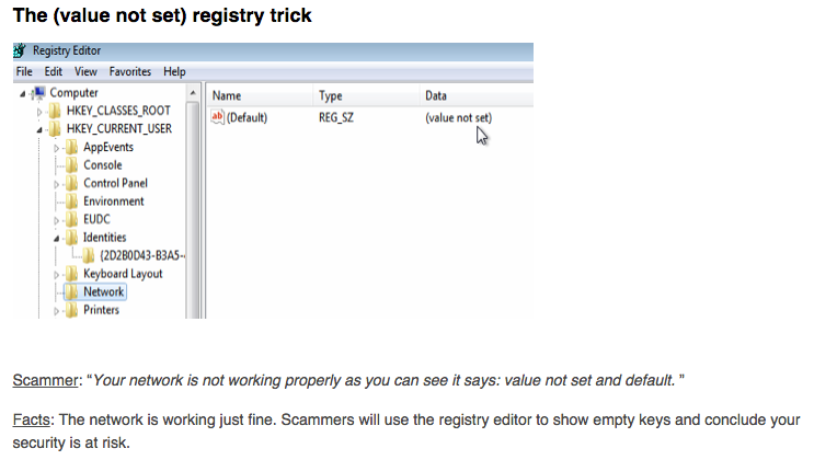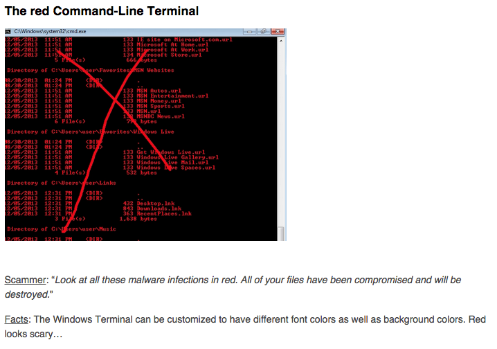The type asking for a registration number usually has a telephone number as well, but often they come with a few links that will open sites with popular remote assistance/desktop software like TeamViewer, LogMeIn, Ammy Admin, Supremo, and others. In these cases, the scammers will ask you to install that software and give them your access code, so they can “repair” your computer. Selling you overpriced solutions and “service contracts” is the real goal, obviously.